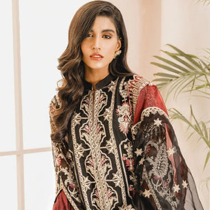 Product Details: FRONT: 1 Meter Crinkle Chiffon - Embroidered BACK: 1 Meter Crinkle Chiffon - Embroidered SLEEVES: 0.75 Meter Crinkle Chiffon - Embroidered FRONT OPEN GOWN BORDER: 2.5 Meter Organza...