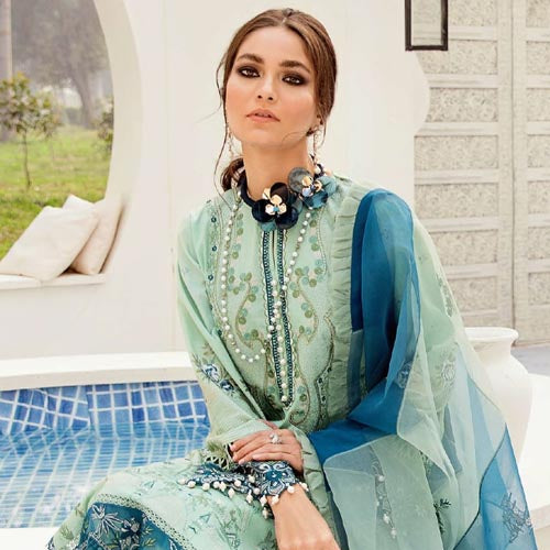 Lawn Embroidered Front + Back Body ( 0.66 Meter )Lawn Embroidered Sleeves ( 0.66 Meter )Lawn Embroidered Front Kali ( 7 PC )Lawn Embroidered Back Kali ( 7 PC )Organza...